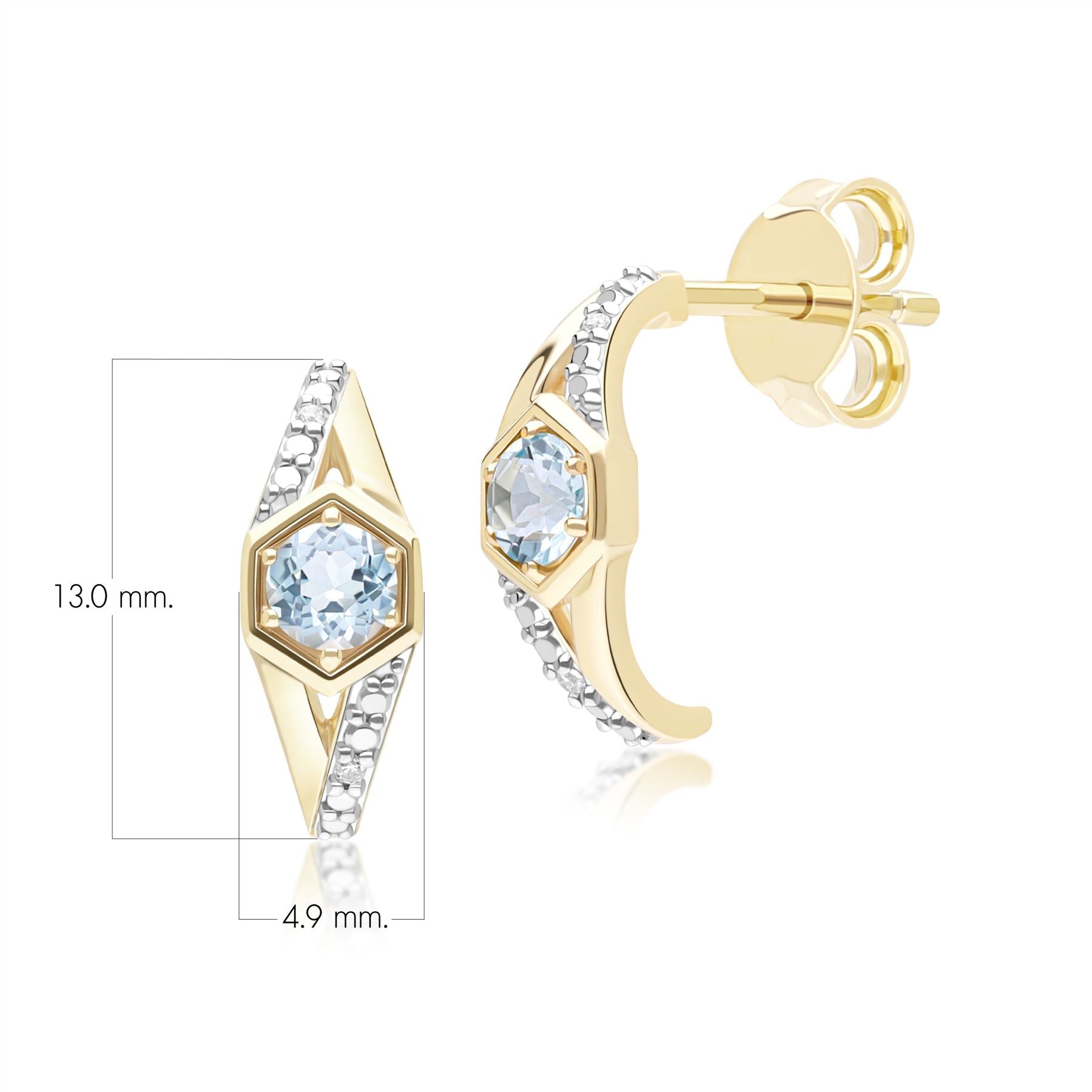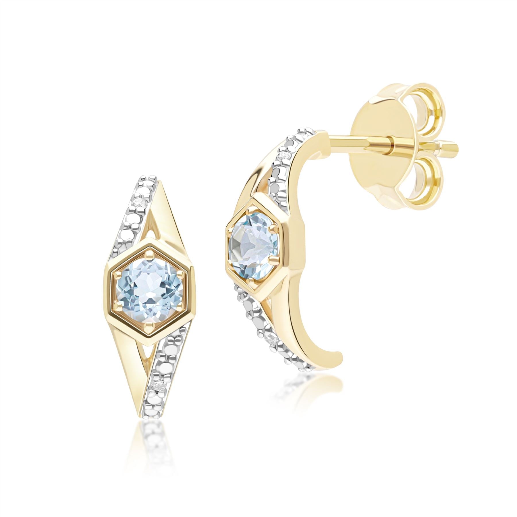 Geometric Hexagon with Prong set Round Topaz and Diamond Half Hoop Earrings in 9ct Yellow Gold