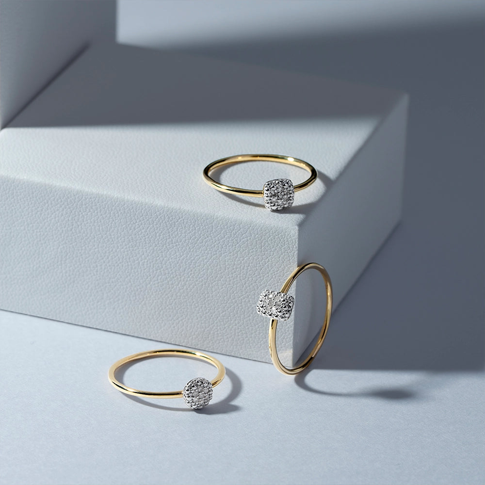 Embrace the essence of modern luxury with Gemondo's captivating Diamond Pavé Collection. This exquisite range features warm golden designs adorned with a mesmerising array of dainty diamonds, creating a sense of fluidity and effortless sophistication. Imagine yourself adorned with sparkling organic shapes, each a testament to timeless elegance and the enduring brilliance of diamonds.