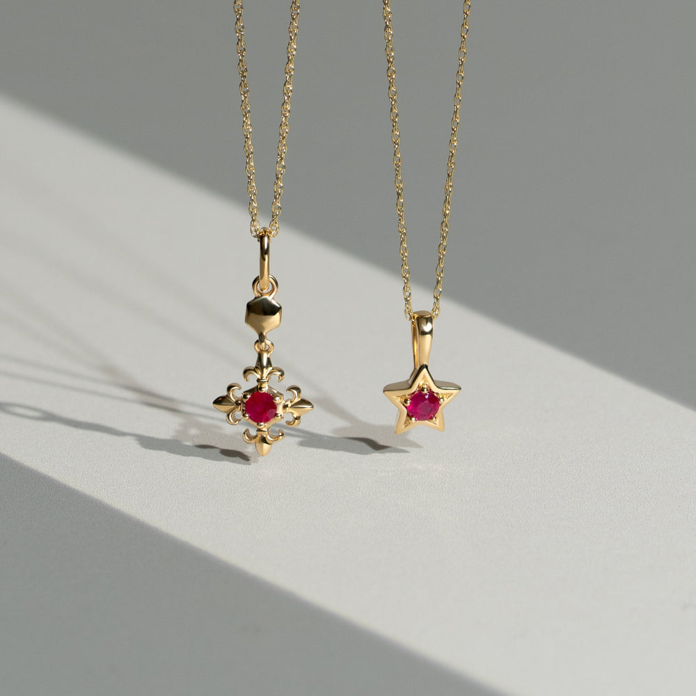 Classic Single Stone Round Ruby Star Pendant in 9ct Yellow Gold