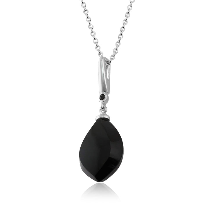 Gemondo's Art Deco collection brings you wonderfully embellished Great Gatsby-esque designs inspired by the roaring 1920's. This stunning art deco inspired necklace crafted from sterling silver features a large pear shaped black onyx cabochon offset with a round cut faceted black spinel gemstone.