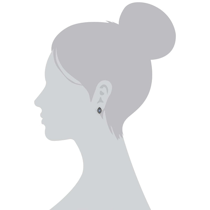Art Nouveau Marquise Blue Topaz & Marcasite Stud Earrings in 925 Sterling Silver