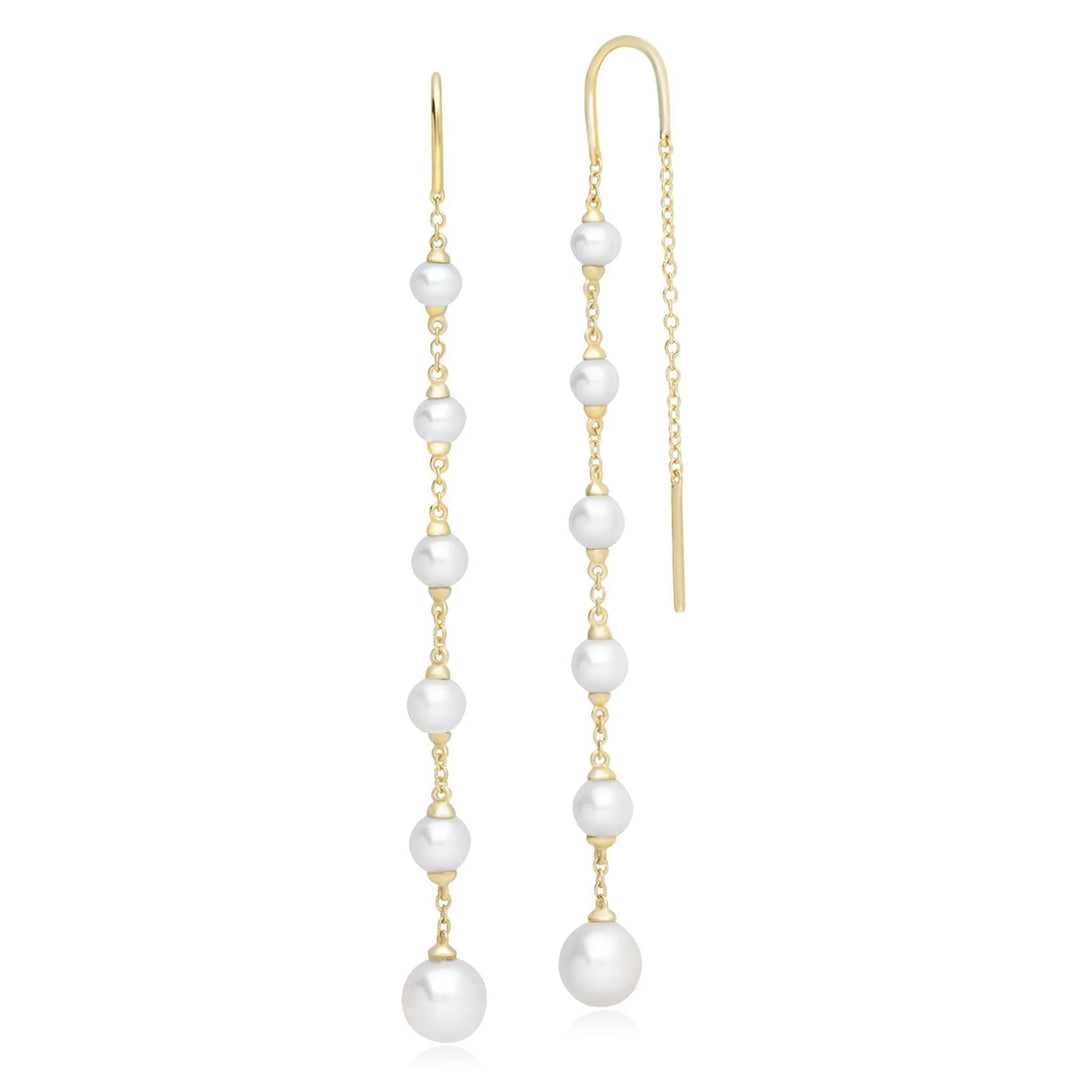 ECFEW™ Unifier White Topaz & Pearl Dangle Drop Earrings in Gold Plated Sterling Silver