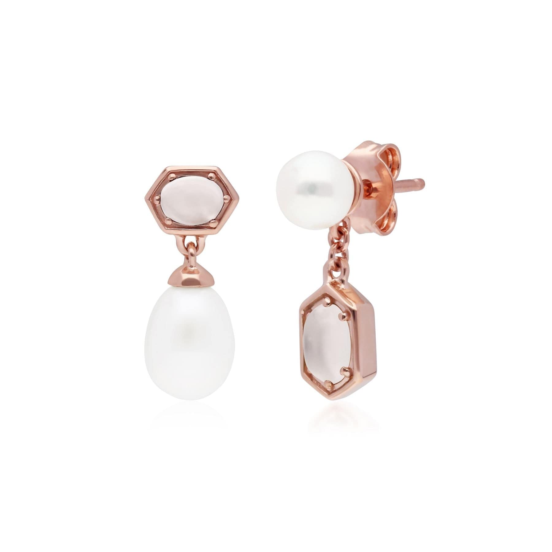 Modern Pearl & Moonstone Mismatched Drop Earrings in Rose Gold Plated Silver